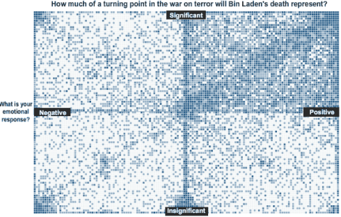 Cu câteva zile înainte de moartea lui Osama bin Laden SUA au revizuit codul de alertă reducând toată complexitatea sa confuzantă la două coduri: „imminent” și „elevated”. Sub această clasificare SUA nu mai este deja considerată sub amenințare teroristă. Un asemenea sentiment de siguranță nu putea fi decât întărit de acțiunea din Pakistan. Printre altele NY Times a făcut un sondaj printre cititorii săi (~14000 de respondenți) și majoritatea s-au arătat atât bucuroși cât și optimiști.