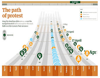 Puteți urmări pe situl The Guardian (click imagine) un excelent rezumat al situației actuale din lumea arabă și musulmană.