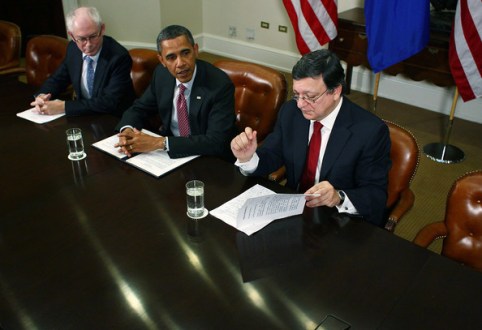 Herman van Rompuy, Barack Obama și Jose Manuel Barroso, Summitul UE-SUA, 27 noiembrie 2011 (Mark Wilson/Getty Images North America)
