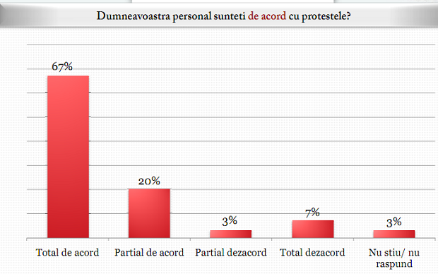 În ianuarie 2012 apar manifestațiile din Piața Universității. Nu interesează pentru acest comentariu cât de mari sunt aceste manifestații. Ne interesează sprijinul popular: 67% dintre români susțin total un miting a cărui singură revendicare clară este „Jos Băsescu”. Restul au ezitări mai mari sau mai mici: