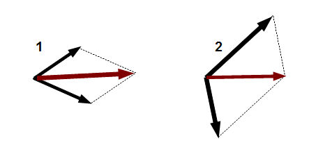 Să zicem că avem o barjă trasă de două remorchere. Acestea exercită fiecare câte o forță asupra barjei, iar cele două forțe au direcții diferite. Forța rezultantă este egală cu suma vectorială a forțelor. Suma vectorială se calculează conform regulii paralelogramului (v mai jos). Nu este nevoie să înțelegeți această regulă ci să rețineți că, (1) cu cât direcțiile celor două forțe sunt mai apropiate, cu atât vectorul rezultat este mai mare, apropiindu-se de suma nominală a forțelor. Și invers (2) cu cât direcțiile sunt mai divergente, cu atât suma vectorilor este mai mică, ajungând să fie mai mică decât oricare din forțele individuale. Aceeași logică poate fi extrapolată pentru un număr oricât de mare de forțe.