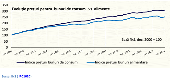 În 2007-2008 importurile de alimente, deja aflate pe trend ascendent, fac un nou salt pentru a a acoperi lipsa ofertei interne. Importurile rămân ridicate dar exporturile compensează din ce în ce mai mult, astfel încât în 2013 România devine exportator net de mâncare (anul nu este prezent în grafic). Agricultura românească rămâne „meteosensibilă”; de aceea prezența unei surse rapide de import prin deschiderea granițelor cu UE are o importanță strategică care nu poate fi subestimată.