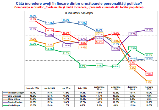 Diferențele față de 2012 sunt, însă semnificative. Scăderea politicienilor ca nivel de încredere pare să fie mai accentuată. Poate că aici avem și o problemă de înlocuire de generații. Marile nume ale luptei dintre Băsescu și USL nu mai sunt astăzi atât de prezente, însă nu știm încă cine vine în locul lor.